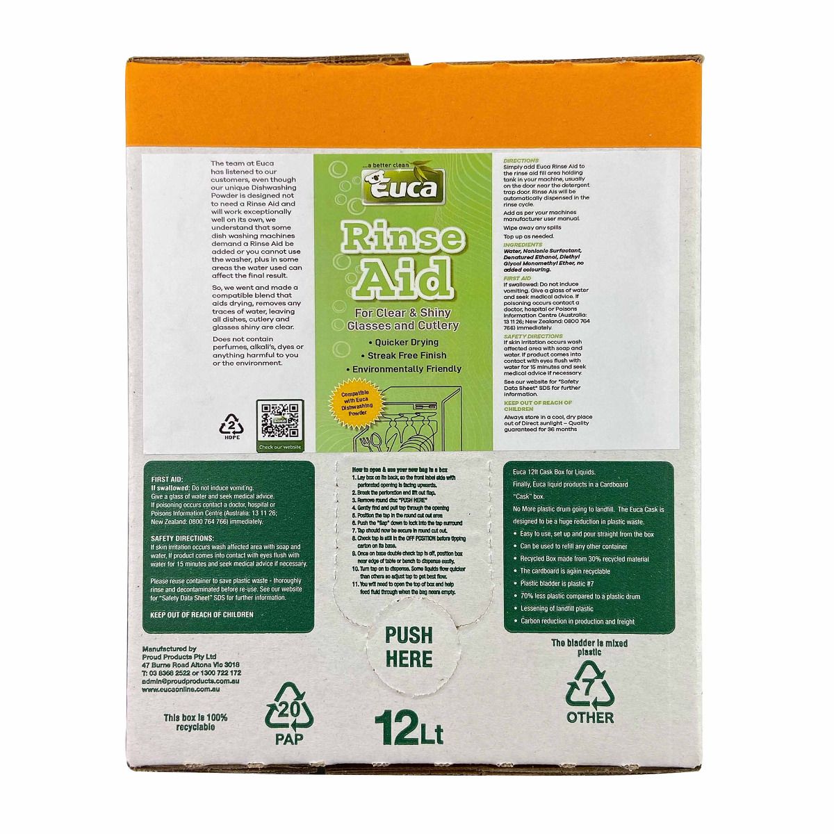 So, Euca Rinse Aid is a compatible blend that aids drying, removes any traces of water and does not contain perfumes, alkali’s, dyes or anything harmful to you or the environment.