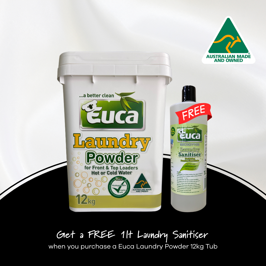 Euca Laundry Powder - 12kg + Laundry Sanitiser Liquid Eucalyptus 1lt