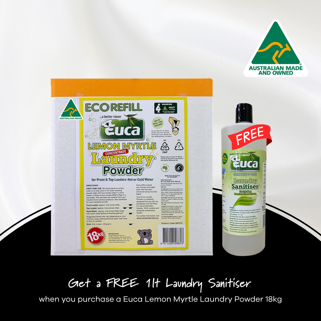 Laundry Powder - Lemon Myrtle + Laundry Sanitiser Liquid Eucalyptus 1lt